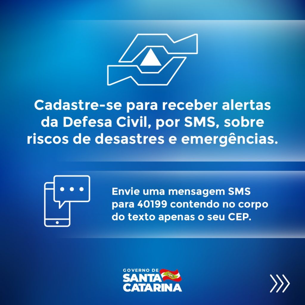 Para receber notificações de emergência basta cadastrar o CEP que deseja ser monitorado. Envie um SMS com o CEP (com ou sem hífen ou espaço) para 40199. Quem já possui cadastro não precisa se registrar novamente. Para incluir novo CEP, basta repetir o procedimento.