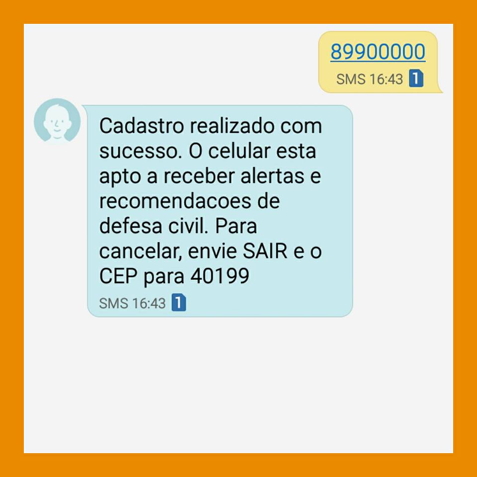 Para receber notificações de emergência basta cadastrar o CEP que deseja ser monitorado. Envie um SMS com o CEP (com ou sem hífen ou espaço) para 40199. Quem já possui cadastro não precisa se registrar novamente. Para incluir novo CEP, basta repetir o procedimento.