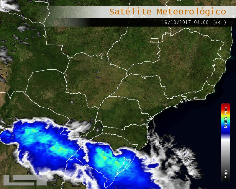 17/10/2017 19:03Tempo: O sol aparece entre nuvens favorecendo a rápida elevação da temperatura. A partir da tarde uma frente fria no mar e um sistema de baixa pressão no continente favorecem a ocorrência de pancadas de chuva com algumas trovoadas. Há risco de temporal de forma localizada com rajadas fortes e momentâneas de vento.