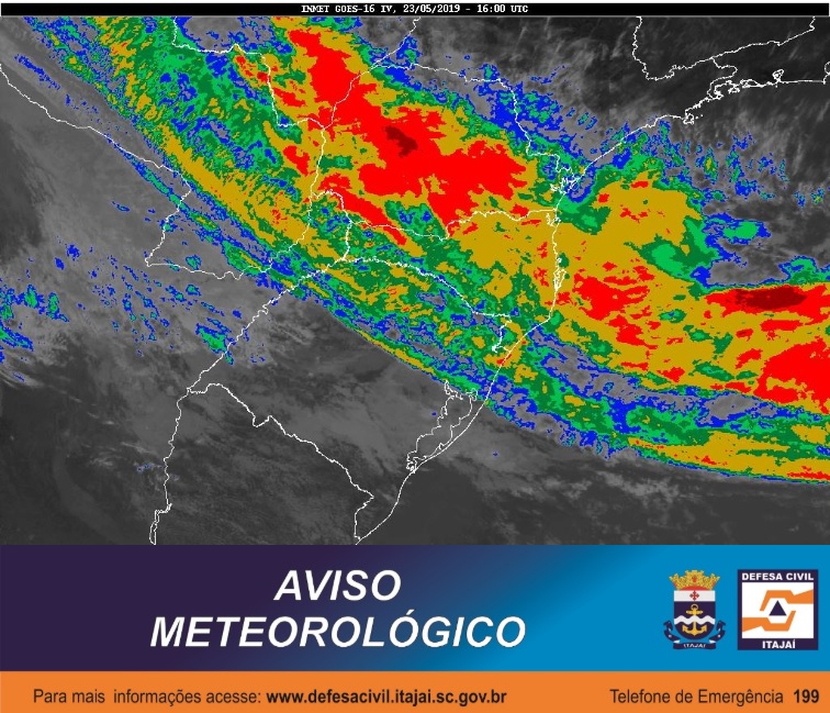 23/05/2019 15:14O tempo fica instável com chuva em Itajaí e região na tarde e noite desta quinta-feira (23), devido ao deslocamento de uma frente fria associada a um sistema de baixa pressão posicionada entre o PR e SC. À noite a chuva vem acompanhada por algumas trovoadas.