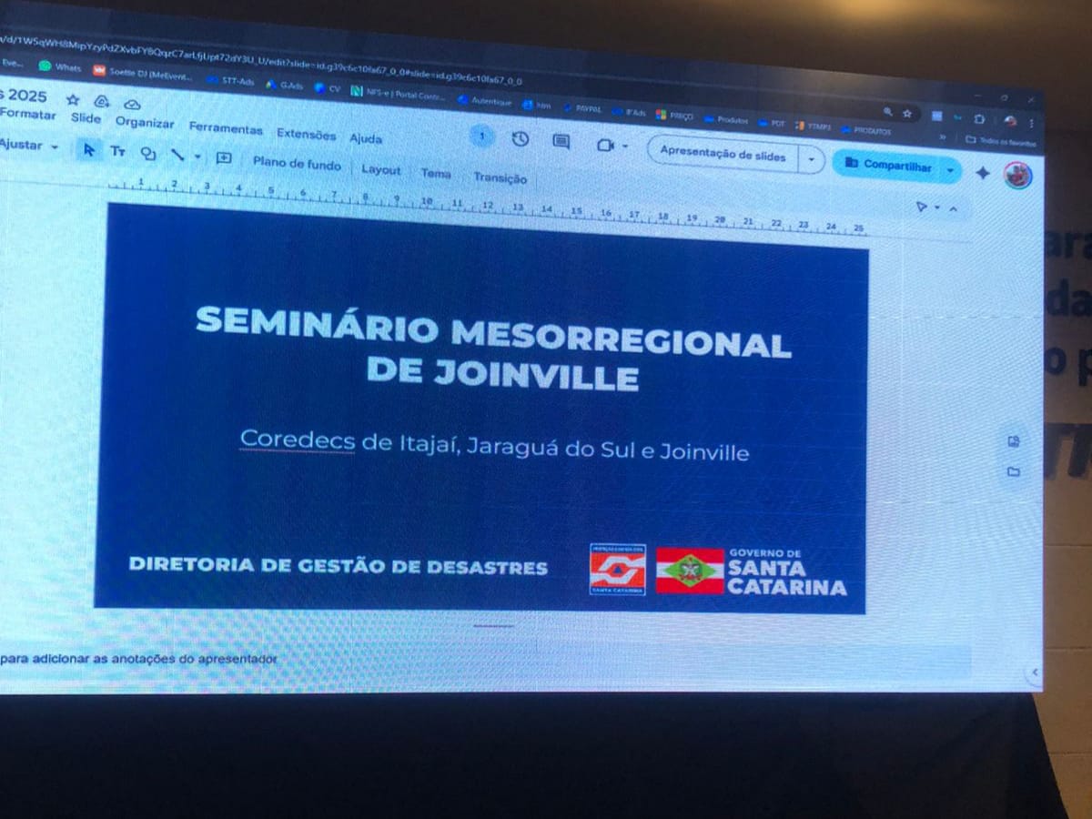 A Defesa Civil de Itajaí participou, nesta quarta-feira (3), da quinta edição do Seminário Mesorregional de Gestão de Desastres, promovido pela Secretaria de Estado da Proteção e Defesa Civil. O encontro, realizado na Associação Empresarial de Joinville (ACIJ), reuniu equipes das regionais de Joinville, Jaraguá do Sul e Itajaí para alinhar procedimentos e fortalecer a preparação para o 2º Simulado Geral de 2026.